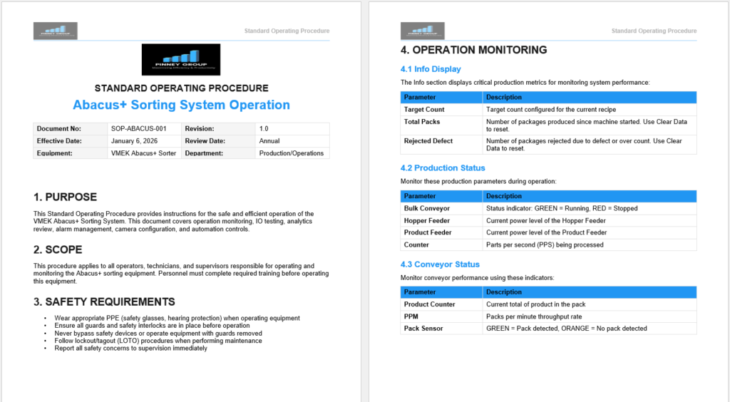 SOP Creation Tool is a purpose-built AI assistant designed to help manufacturers rapidly create clear, operator-friendly One Point Lessons (OPLs) by turning tribal knowledge, equipment details, and stakeholder input into standardized, easy-to-use visual instructions. It guides teams through best practices for capturing the right level of detail, aligning operations, maintenance, and engineering stakeholders, and organizing OPLs so they are intuitive on the plant floor. The result is faster buy-in, more consistent execution, reduced training variability, and fewer mistakes at the point of work, especially on complex equipment like fillers, conveyors, and support systems such as stack lights and material handling indicators